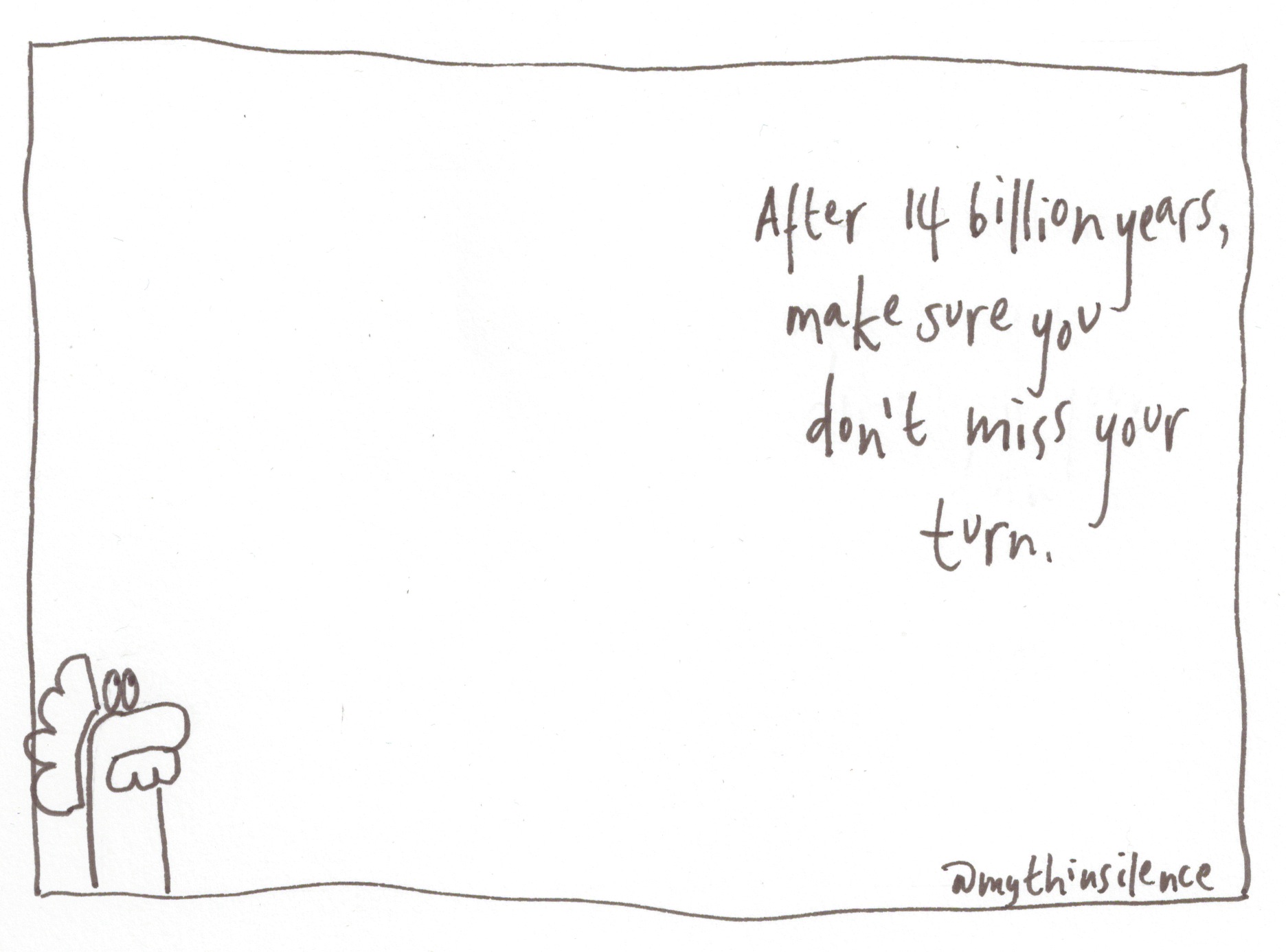 (My challenge for 2014 has been to blog everyday, as long as I can create a cartoon for each post. Today’s ends the challenge and begins a new one. More of this to come, but I want to thank Seth Godin for his daily blogs which turn into books and amazing projects, and to Hugh MacLeod for the encouragement to begin cartooning – something I’d not have imagined myself doing before reading his three amazing books, and, he also has a really neat five cartoons a week site to subscribe to. Thank you to you for being amongst the 6,800 views in 2014.)