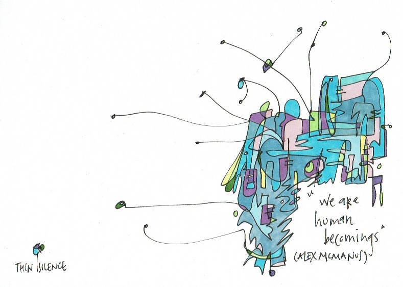 Nassim Taleb would probably describe this journey from despair to hope as one of fragility to antifragility.^^ Sherry Turkle’s observation of a scientists interaction with a robot adds further nuance. The scientist in here experiments tries to feel what the robot is “feeling” – the robot’s programming that makes it possible to act and interact as it does.*^ This brings the realisation that humans are programmed too: something that’s taken place over many years years in thousands upon thousands of interactions in which we have been acted upon and reacted or responded to the different stimuli.