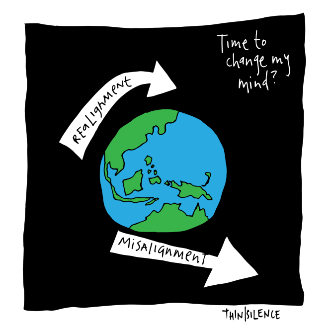 I must realign or the procession will move away from me. Without realignment I am misaligned.