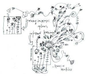 To use the ideas swirling all around us, or the spaces that already exist to meet in, or the abilities we have been developing, or the paths that are already opening up. Up-cycling all of these with the sparking idea we have to pursue.