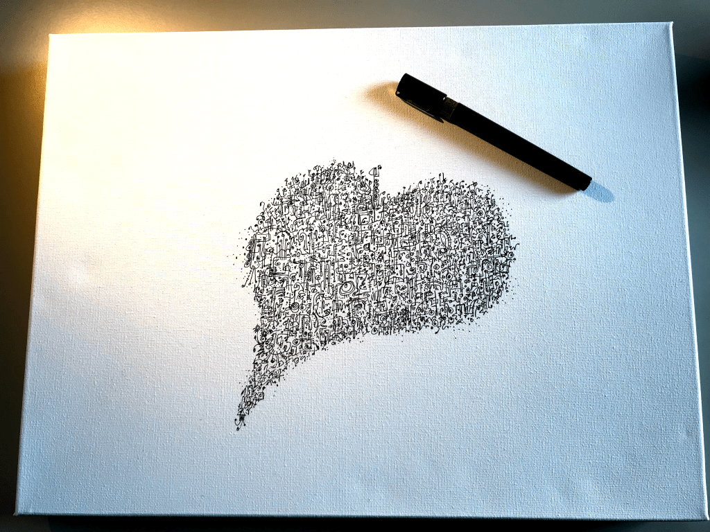 Doodle on canvas Posted on July 4, 2024 by geoffreybaines This larger doodle in progress is for sale. It’s a boutique design on a deep 12×16″ (30.5×40.6cm) canvas. Drop me a line if you are interested. Share this: Click to share on X (Opens in new window) X Click to share on Facebook (Opens in new window) Facebook Like Loading... Related